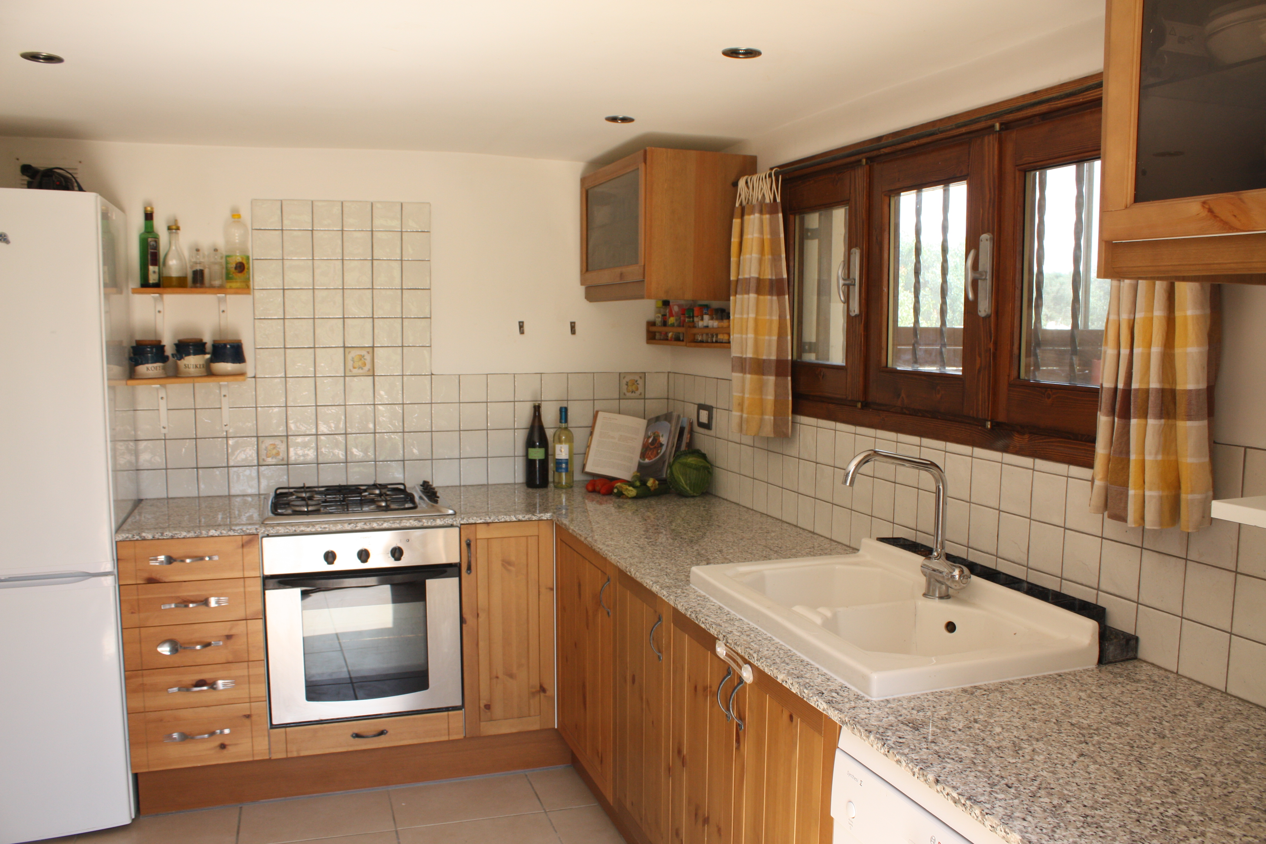 The kitchen has doors out to the terrace with a window looking down the garden. It is fully equipped with tall fridge/freezer, oven, hob, dishwasher, double sink. We do supply the basics such as coffee, salt, pepper, pasta etc.